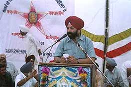 Sardar Hira Singh Ghabriya addressing a public meeting at VISHWAKARMA Mandir, Rampurphool
