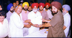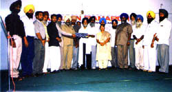 S. Hardeep Singh Bhamra (Phagwara) receiving his winning certificate form S. Dalip Singh S.D.M.